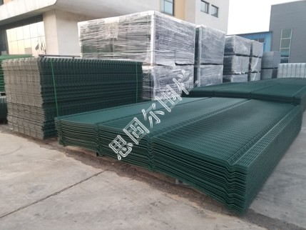 金屬護欄網片是組成金屬護欄的一部分,很主要的一個組成部分。金屬護欄網片主要就是由焊網機焊接成的網片,無論是 框架護欄網還是雙邊絲護欄網還是三角折彎護欄網在成型之前都是護欄網片平片,這是最基本的一道工序,比如說三角折 彎防護網,先要用低碳鋼絲焊成網片,然后再經過壓彎,再進行表面處理,而框架護欄網則需要焊成網片以后再焊上邊框 再進行表面處理,只是工序不同。